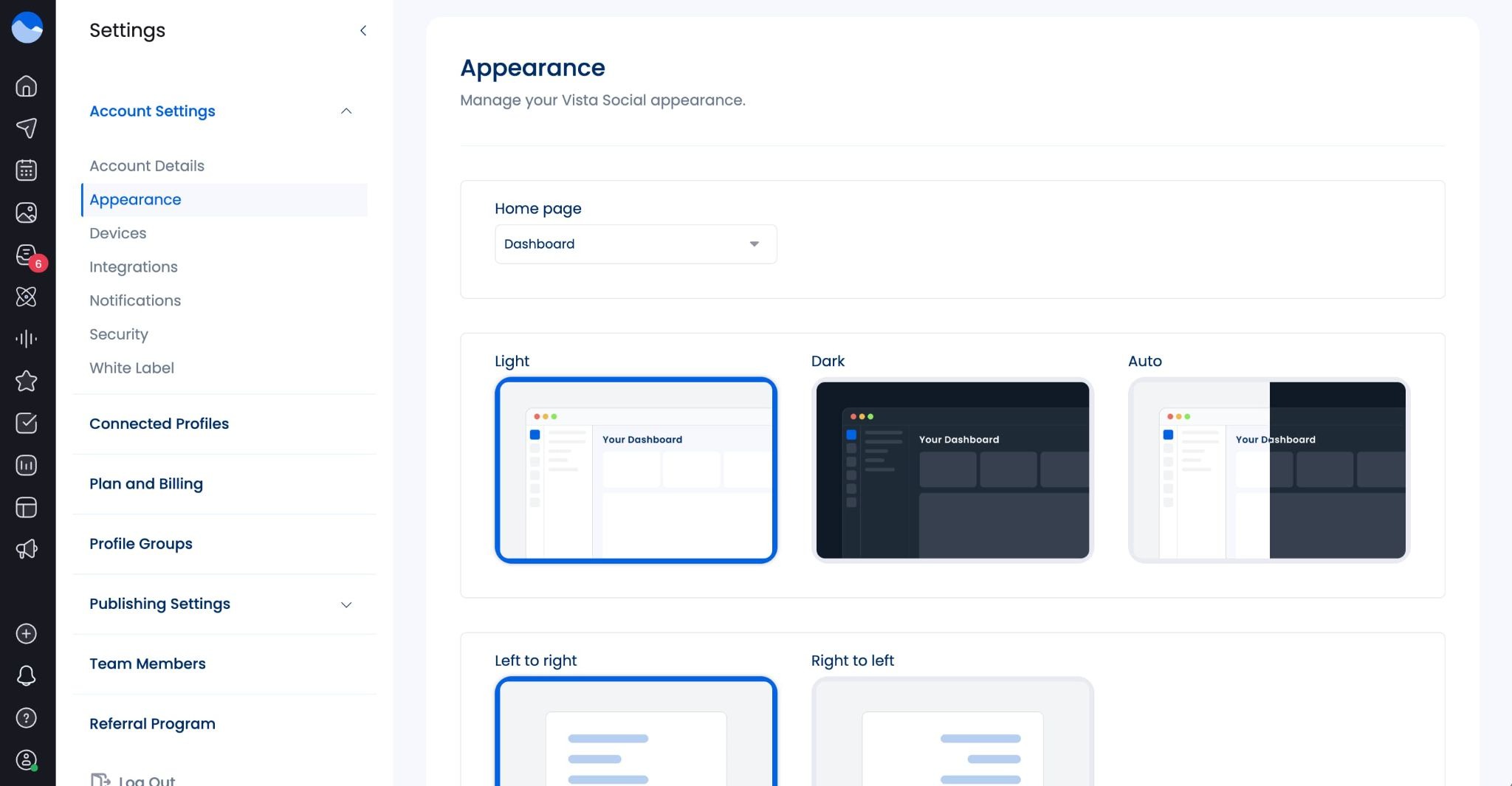 - Custom home page: What section of Vista Social do you use most? Do you wish you could log in and immediately be taken to that page? Now with our custom home page feature, you can log in right at the inbox, calendar, reports, and more.