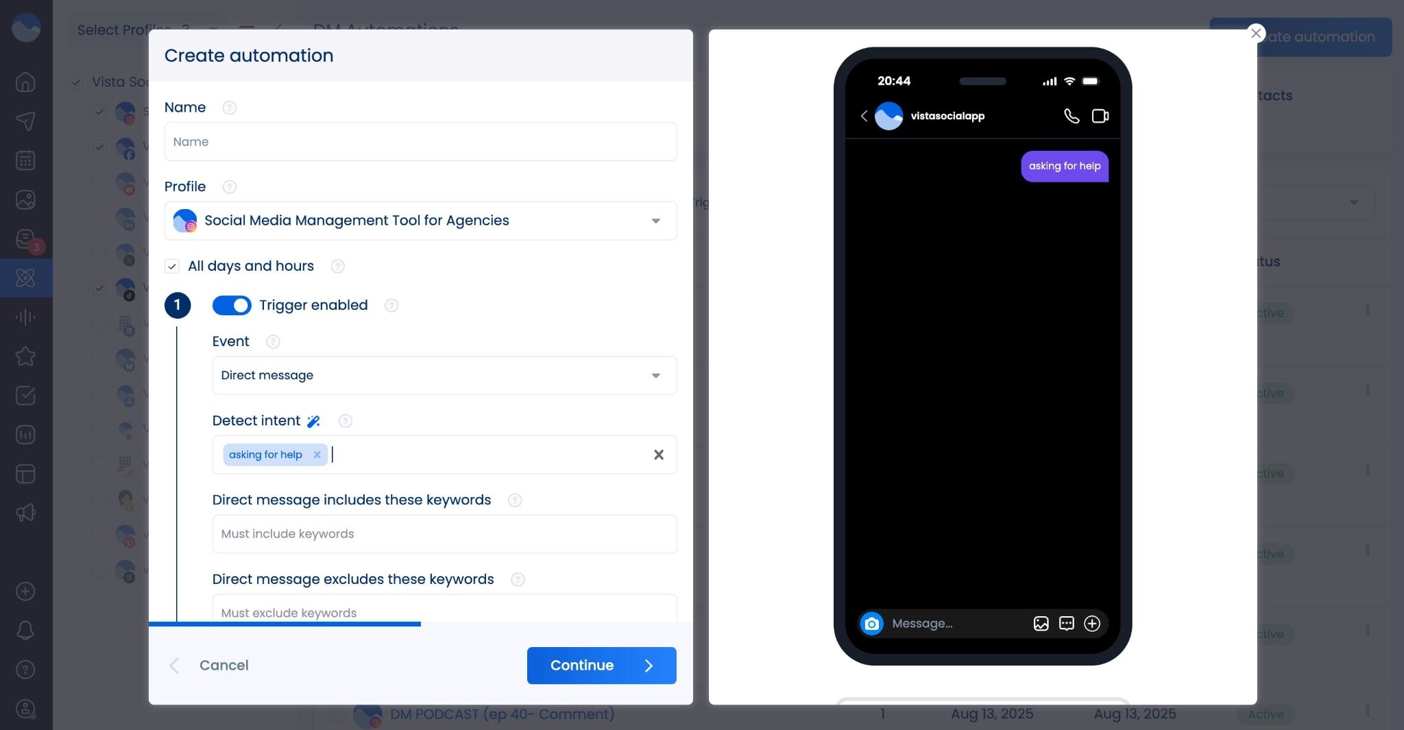 - AI intent: Make automated DM responses even smarter by letting AI decipher intent, rather than trying to guess which keywords your customers will use each time.