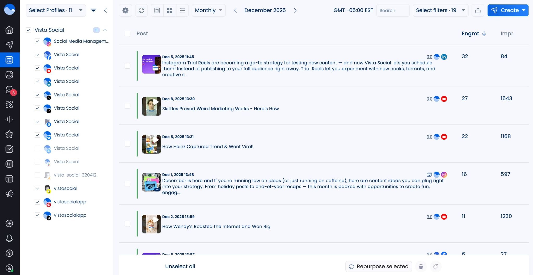 - Repurpose multiple posts: Select multiple posts that you want to repurpose so you don’t have to go through each one individually.