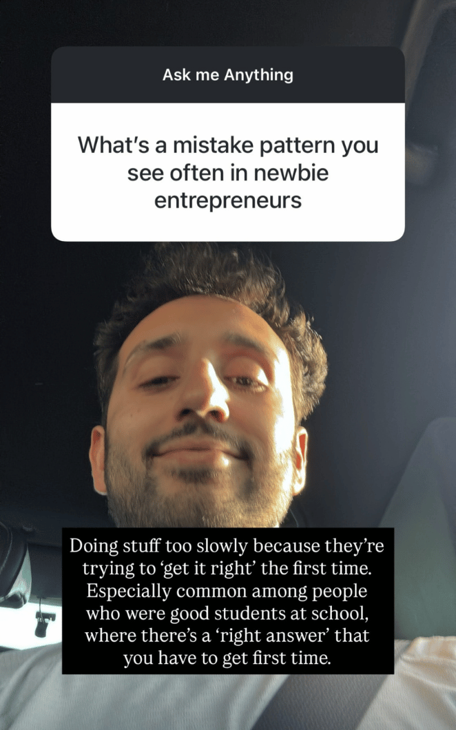 Fun idea: Besides asking questions, consider answering your audience’s commonly asked questions, the way Ali Abdaal did in his Instagram Story below.