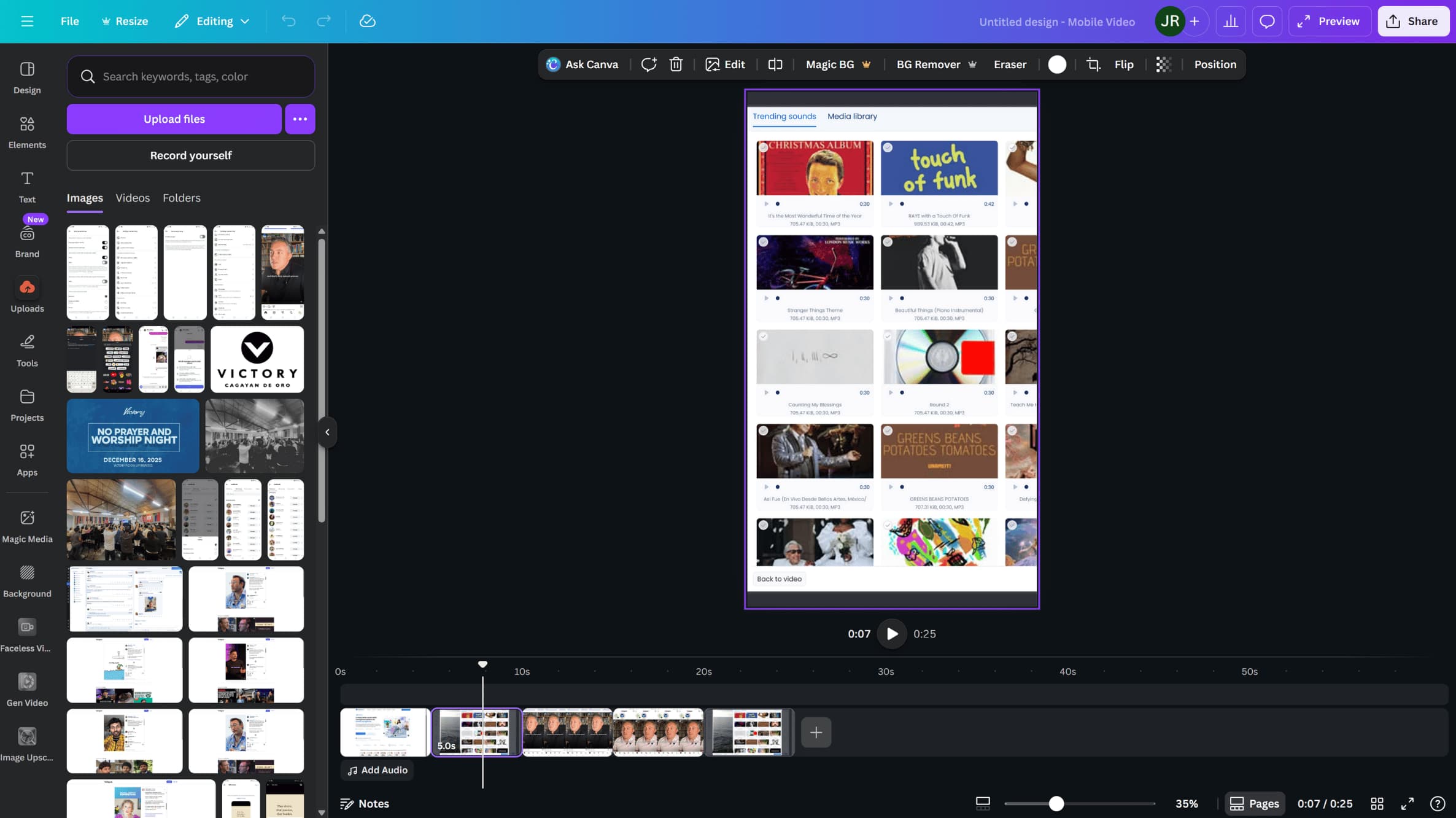 Canva automatically assigns a default duration to each page, which can vary by template and animation settings and can be adjusted manually in the timeline. You can fine-tune the display time of individual pages using the timeline below. You can reposition and adjust the image’s size to your liking. Canva’s flexibility lets you add multiple photos to the same page of your reel.