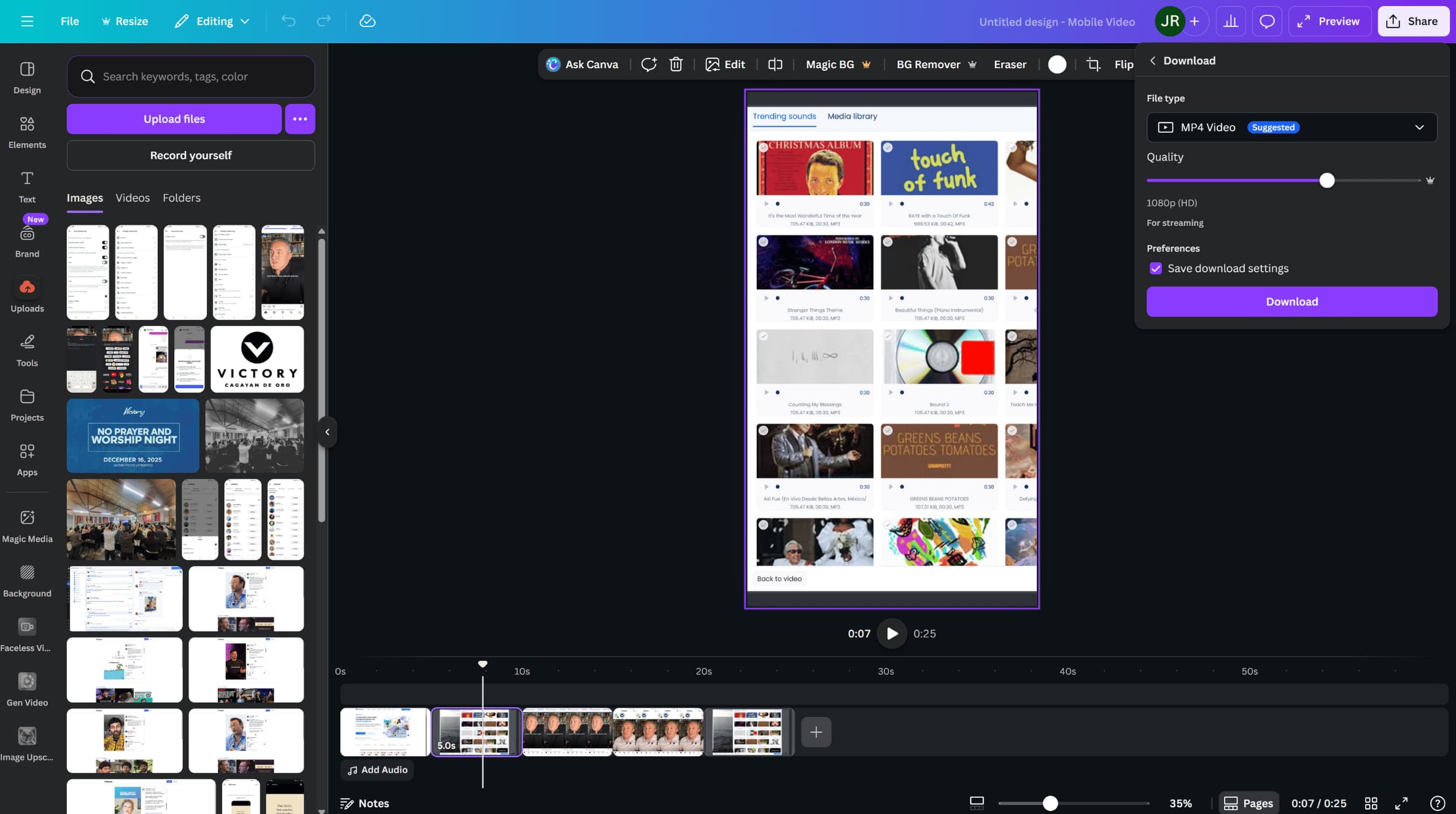 - Desktop to Mobile: Since using high-resolution images is always encouraged, editing is also almost always done on desktops. With Canva, transferring high-resolution images from your desktop to your mobile device is hassle-free. You can design and edit on your PC, then download and post the final video on your mobile app. Easy-peasy.