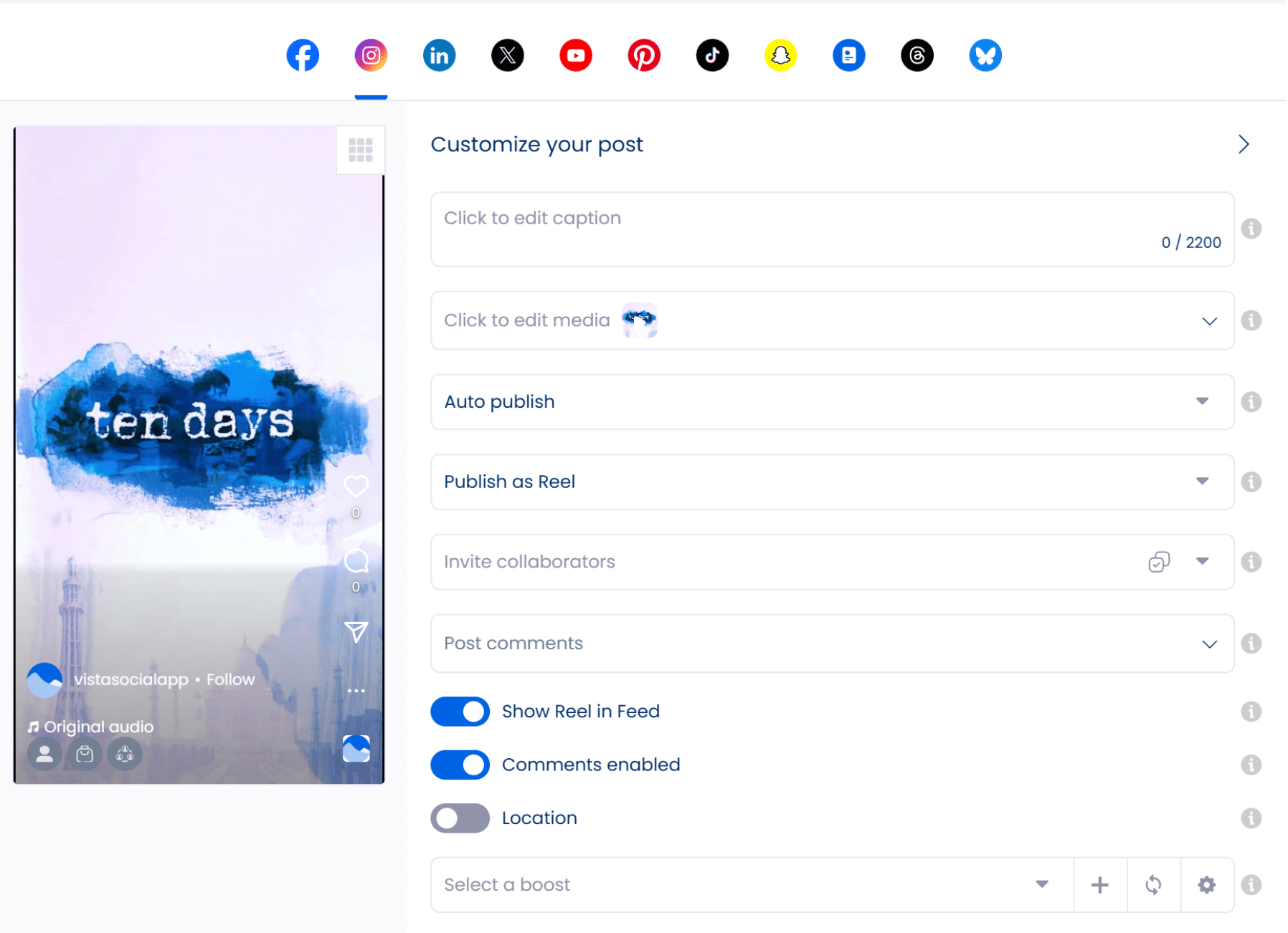 Using Vista Social to schedule your reel is a more convenient and seamless option.