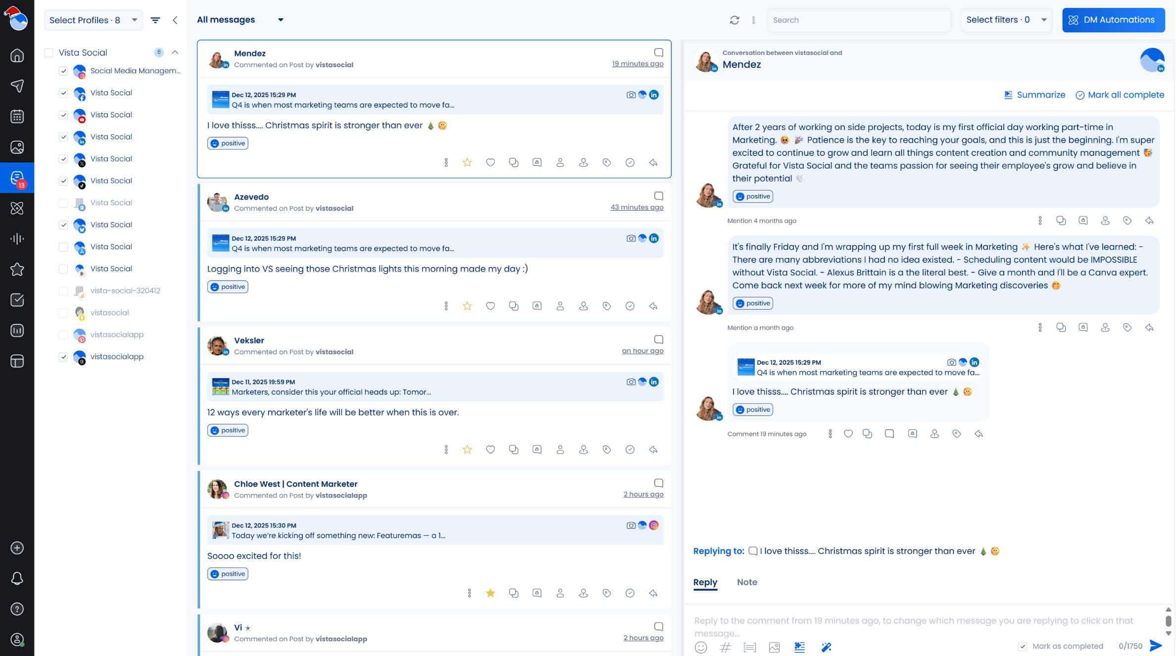 Don’t miss out on Vista Social’s other amazing features. The platform offers a social media engagement feature that includes a Social Inbox. The Smart Inbox brings all audience interactions from connected social media profiles into one place, making it easier to manage conversations without switching between platforms.