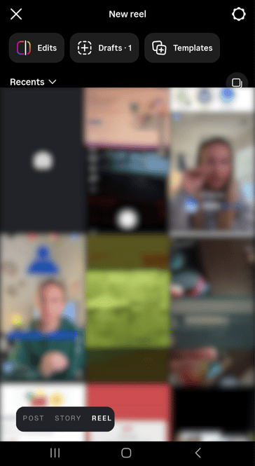 Open your device’s photo gallery from within the Reel editor to select images for your Reel.