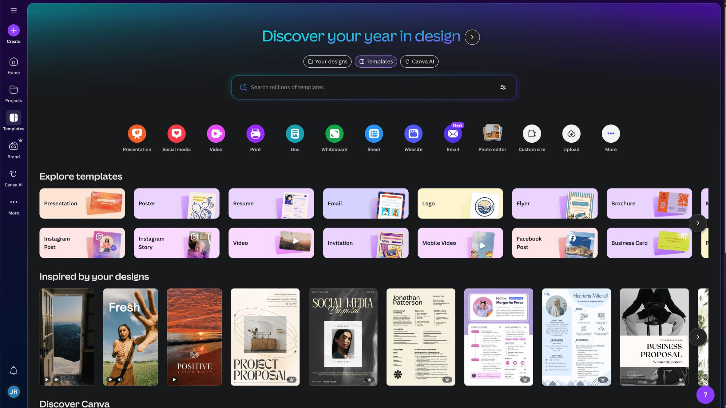 On the Canva dashboard, click the ‘Create a design’ button in the upper left corner of your screen.