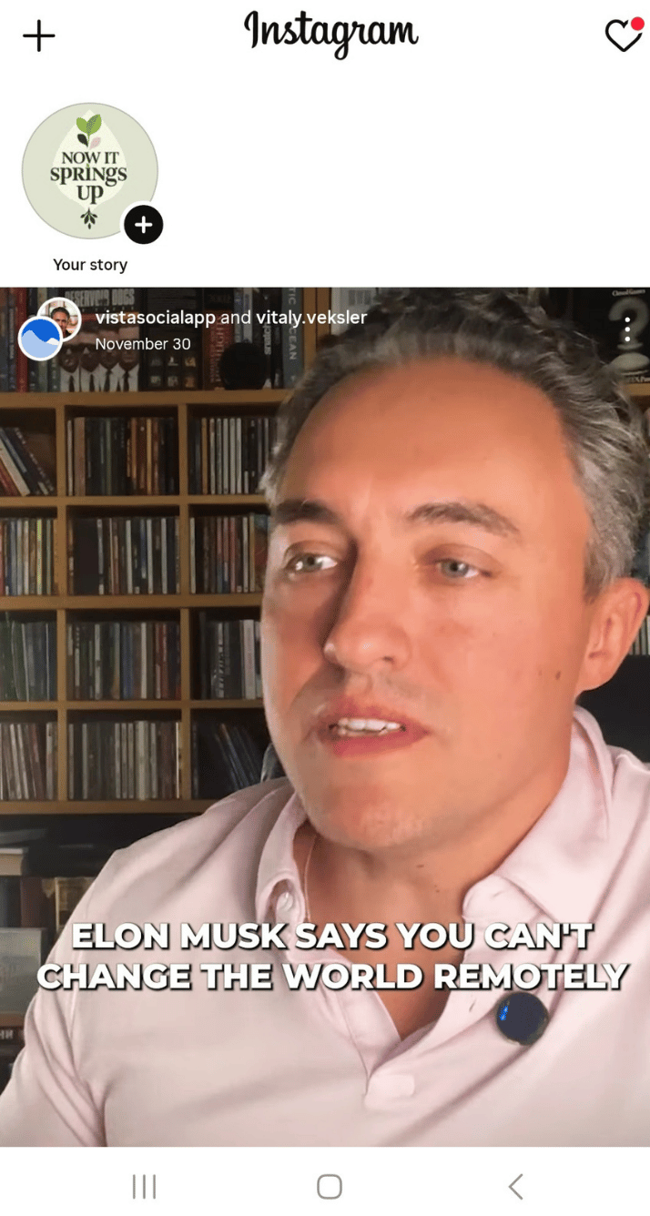 “Remixing a Reel means creating one that includes content from someone else’s Reel. It’s a great way to engage with other users and create side-by-side interaction.” – Caroline Foresy, Principal Marketing Manager, Hubspot