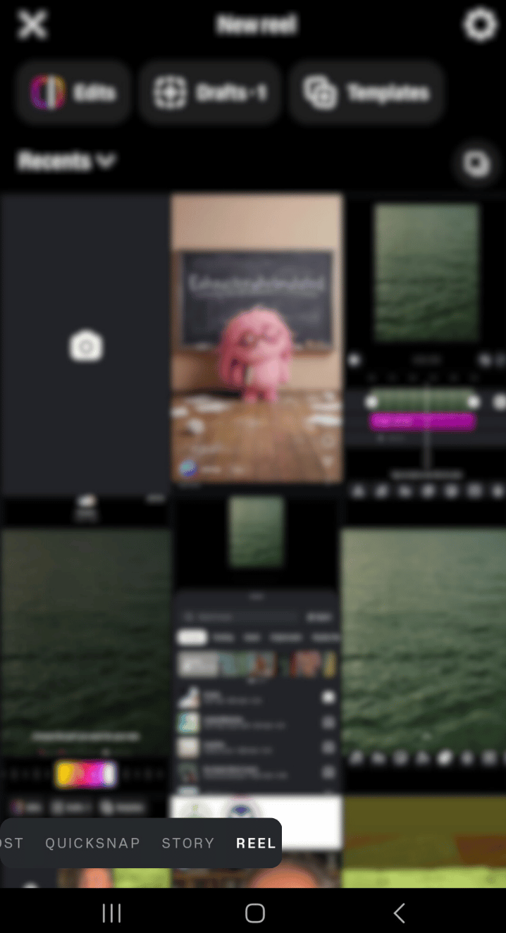 Tap “Reel” from the bottom carousel menu. This immediately switches you to the Instagram reel recording tool.