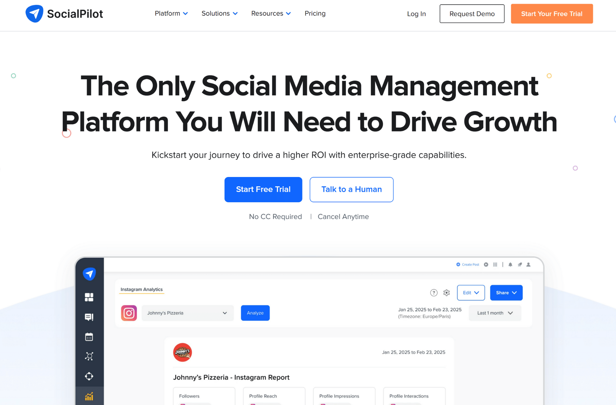 SocialPilot is a social media account management platform that gives agencies a cloud-based, collaborative workspace for campaigns.
