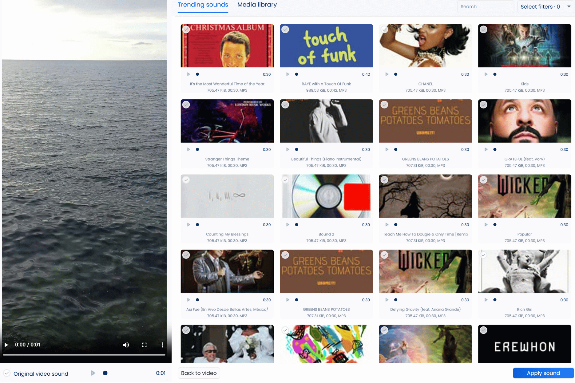 Click on the the trending audio you want to use and tap ‘Apply sound.’